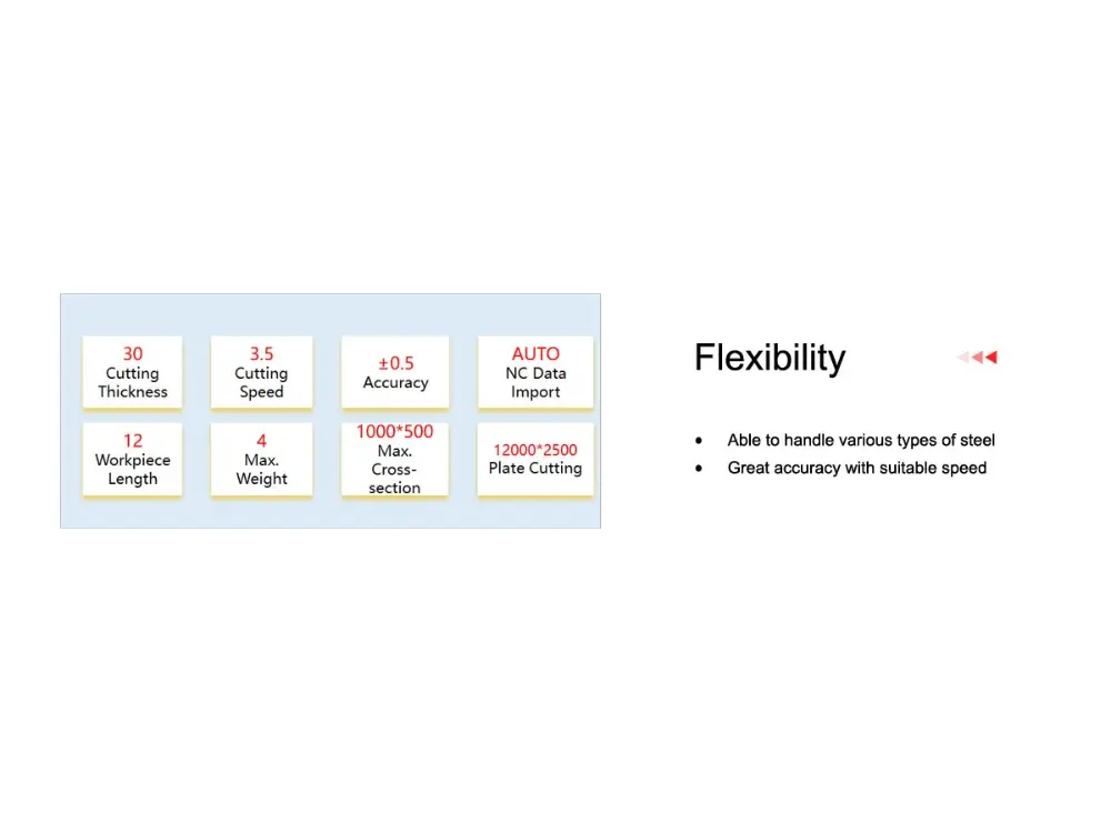 | Cutting Thickness (Carbon Steel O2) | Maximum Vertical Cutting:20mm | |